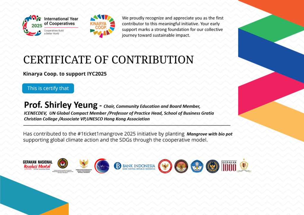 Notably, Prof. Shirley Yeung became the first international contributor and supporter of the global movement #1Ticket1Mangrove, symbolizing a shared commitment to unite people worldwide in collective climate action, education, innovation, and community resilience.